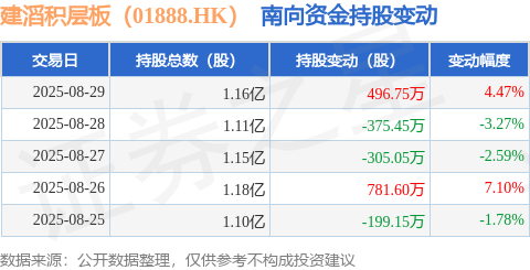 证券之星消息,8月29日南向资金增持496.75万股建滔积层板(01888.HK)。近5个交易日中,获南向资金增持的有2天,累计净增持398.7万股。近20个交易日中,获南向资金增持的有11天,累计净增持3682.1万股。截至目前,南向资金持有建滔积层板(01888.HK)1.16亿股,占公司已发行普通股的3.71%。