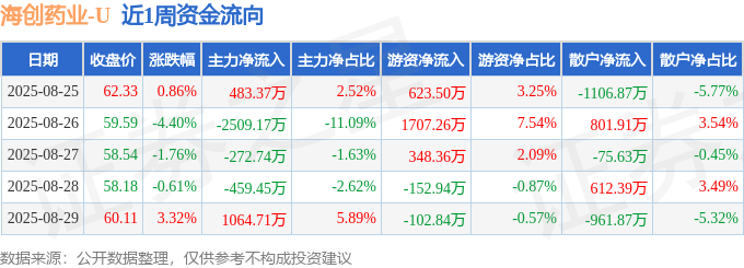 资金流向数据方面,本周海创药业主力资金合计净流出1693.28万元,游资资金合计净流入2423.34万元,散户资金合计净流出730.06万元。本周资金流向一览见下表: