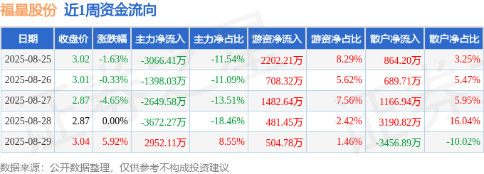 资金流向数据方面,本周福星股份主力资金合计净流出7834.18万元,游资资金合计净流入5379.39万元,散户资金合计净流入2454.79万元。本周资金流向一览见下表: