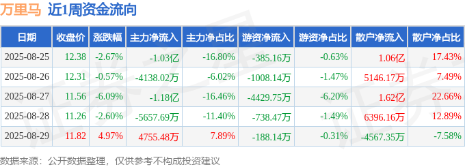 资金流向数据方面,本周万里马主力资金合计净流出2.71亿元,游资资金合计净流出6749.66万元,散户资金合计净流入3.38亿元。本周资金流向一览见下表: