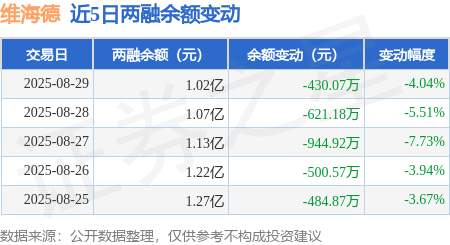 证券之星消息,8月29日,维海德(301318)融资买入1001.33万元,融资偿还1431.4万元,融资净卖出430.07万元,融资余额1.02亿元。