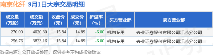 证券之星消息,9月1日南京化纤发生大宗交易,交易数据如下: