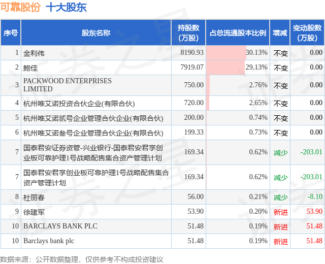 根据可靠股份2025年中报公布的十大股东详情如下: