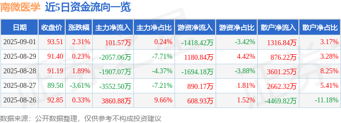 证券之星消息,截至2025年9月1日收盘,南微医学(688029)报收于93.51元,上涨2.31%,换手率2.39%,成交量4.49万手,成交额4.15亿元。