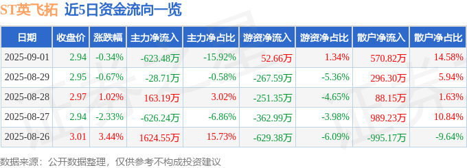 9月1日的资金流向数据方面,主力资金净流出623.48万元,占总成交额15.92%,游资资金净流入52.66万元,占总成交额1.34%,散户资金净流入570.82万元,占总成交额14.58%。