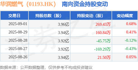 证券之星消息,9月1日南向资金增持269.43万股华润燃气(01193.HK)。近5个交易日中,获南向资金增持的有3天,累计净增持236.73万股。近20个交易日中,获南向资金增持的有14天,累计净增持663.97万股。截至目前,南向资金持有华润燃气(01193.HK)3.96亿股,占公司已发行普通股的17.11%。