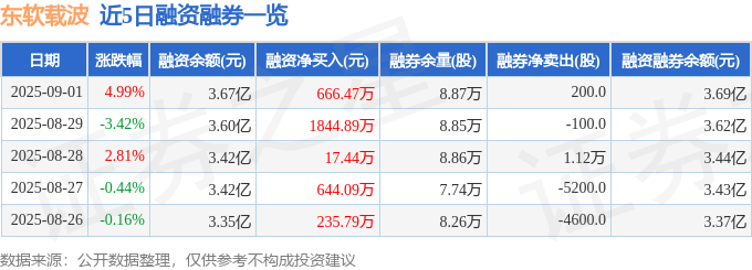 东软载波融资融券信息显示,融资方面,当日融资买入7809.66万元,融资偿还7143.18万元,融资净买入666.47万元,连续3日净买入累计2528.8万元。融券方面,融券卖出1100.0股,融券偿还900.0股,融券余量8.87万股,融券余额168.09万元。融资融券余额3.69亿元。
