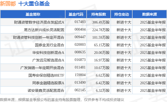 根据2025基金半年报公募基金重仓股数据,重仓该股的公募基金共16家,其中持有数量最多的公募基金为财通资管的财通资管数字经济混合发起式A。财通资管数字经济混合发起式A目前规模为6.49亿元,最新净值1.9195(9月1日),较上一交易日上涨1.85%,近一年上涨145.82%。该公募基金现任基金经理为包斅文。包斅文在任的基金产品包括:财通资管科技创新一年定开混合,管理时间为2021年11月23日至今,期间收益率为30.74%;财通资管创新成长混合A,管理时间为2024年3月26日至今,期间收益率为82.44%。