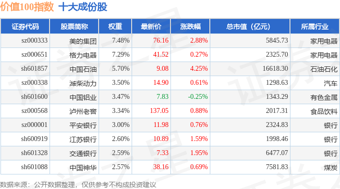 价值100(980081)指数十大成份股详情如下: