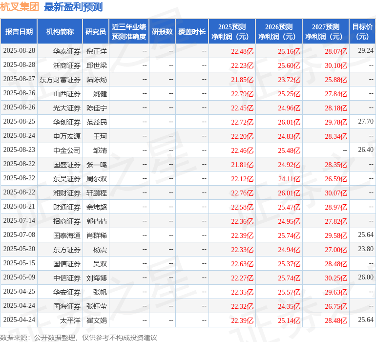 最新盈利预测明细如下: