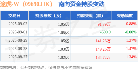 证券之星消息,9月2日南向资金增持91.79万股途虎-W(09690.HK)。近5个交易日中,获南向资金增持的有4天,累计净增持516.97万股。近20个交易日中,获南向资金增持的有12天,累计净增持341.04万股。截至目前,南向资金持有途虎-W(09690.HK)1.05亿股,占公司已发行普通股的12.8%。