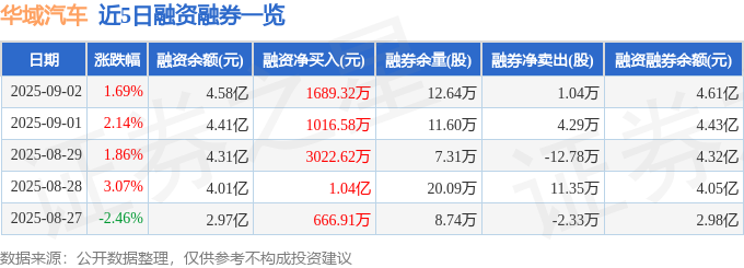 华域汽车融资融券信息显示,融资方面,当日融资买入1.14亿元,融资偿还9749.68万元,融资净买入1689.32万元,连续3日净买入累计5728.52万元。融券方面,融券卖出2.05万股,融券偿还1.01万股,融券余量12.64万股,融券余额251.41万元。融资融券余额4.61亿元。
