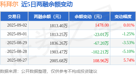 证券之星消息,9月2日,科拜尔(920066)融资买入26.61万元,融资偿还26.47万元,融资净买入0.15万元,融资余额1813.4万元,近20个交易日中有12个交易日出现融资净买入。