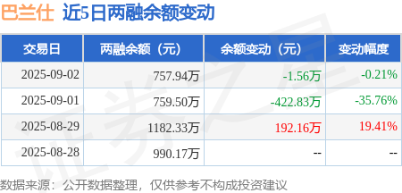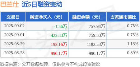 证券之星消息,9月2日,巴兰仕(920112)融资买入104.47万元,融资偿还106.03万元,融资净卖出1.56万元,融资余额757.94万元。