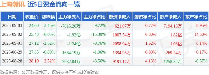 9月3日的资金流向数据方面,主力资金净流出7815.2万元,占总成交额9.72%,游资资金净流入621.07万元,占总成交额0.77%,散户资金净流入7194.13万元,占总成交额8.95%。