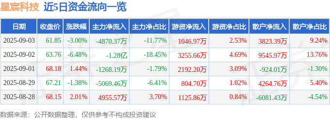 证券之星消息,截至2025年9月3日收盘,星宸科技(301536)报收于61.85元,下跌3.0%,换手率3.5%,成交量6.56万手,成交额4.14亿元。