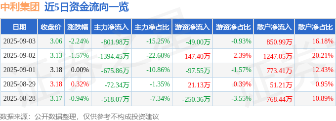 9月3日的资金流向数据方面,主力资金净流出801.98万元,占总成交额15.25%,游资资金净流出49.0万元,占总成交额0.93%,散户资金净流入850.99万元,占总成交额16.18%。