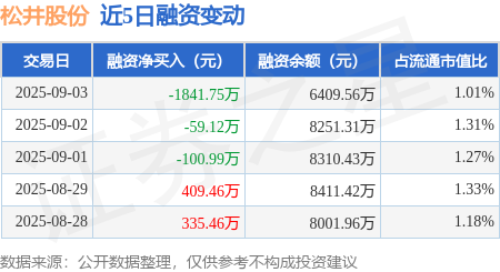 证券之星消息,9月3日,松井股份(688157)融资买入1125.87万元,融资偿还2967.62万元,融资净卖出1841.75万元,融资余额6409.56万元。