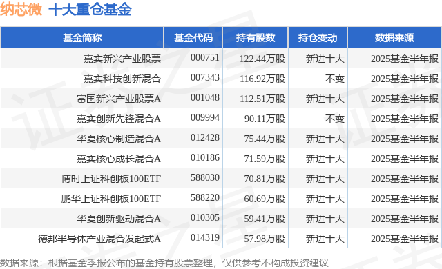 重仓纳芯微的前十大公募基金请见下表: