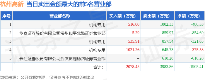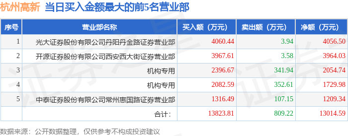 证券之星消息,沪深交易所2025年9月4日公布的交易公开信息显示,杭州高新(300478)因日涨幅达到15%的前5只证券登上龙虎榜。此次是近5个交易日内第1次上榜。