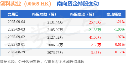 证券之星消息,9月4日南向资金增持25.45万股创科实业(00669.HK)。近5个交易日中,获南向资金增持的有4天,累计净增持61.12万股。近20个交易日中,获南向资金增持的有13天,累计净增持174.66万股。截至目前,南向资金持有创科实业(00669.HK)2131.44万股,占公司已发行普通股的1.16%。