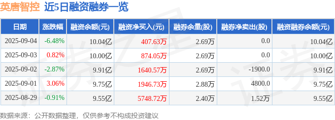 英唐智控融资融券信息显示,融资方面,当日融资买入9583.02万元,融资偿还9175.39万元,融资净买入407.63万元,连续3日净买入累计2922.25万元。融券方面,融券卖出0.0股,融券偿还0.0股,融券余量2.69万股,融券余额24.86万元。融资融券余额10.04亿元。