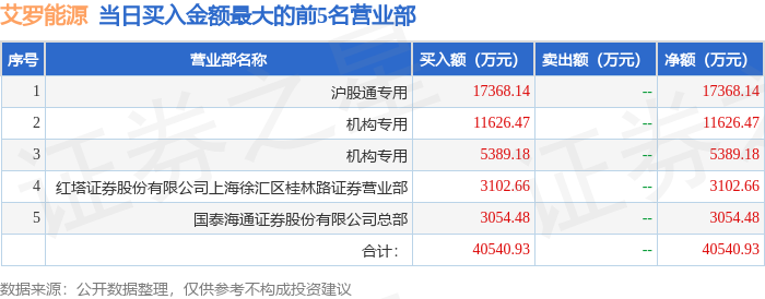 证券之星消息,沪深交易所2025年9月5日公布的交易公开信息显示,艾罗能源(688717)因有价格涨跌幅限制的连续3个交易日内收盘价格涨幅偏离值累计达到30%的证券登上龙虎榜。此次是近5个交易日内第2次上榜。