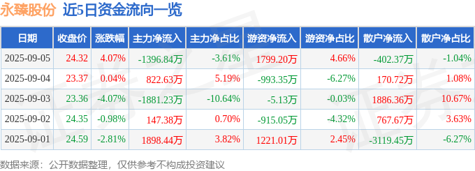 9月5日的资金流向数据方面,主力资金净流出1396.84万元,占总成交额3.61%,游资资金净流入1799.2万元,占总成交额4.66%,散户资金净流出402.37万元,占总成交额1.04%。