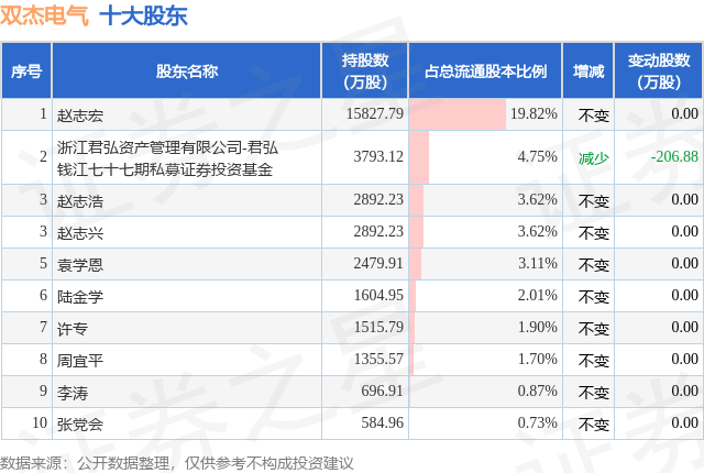 根据双杰电气2025年中报公布的十大股东详情如下: