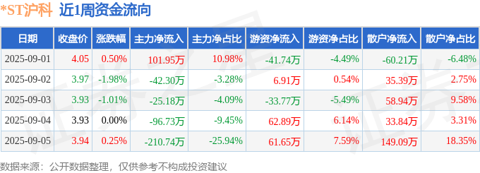 资金流向数据方面,本周*ST沪科主力资金合计净流出273.0万元,游资资金合计净流入55.94万元,散户资金合计净流入217.06万元。本周资金流向一览见下表: