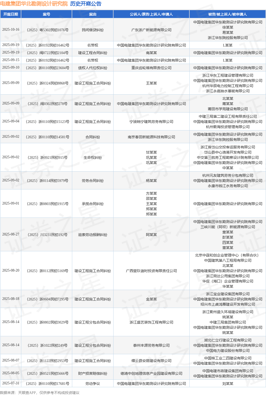 证券之星消息,根据天眼查APP显示,近日公布了一则中国电建集团华东勘测设计研究院有限公司作为原告/上诉人的开庭公告,详细内容如下: