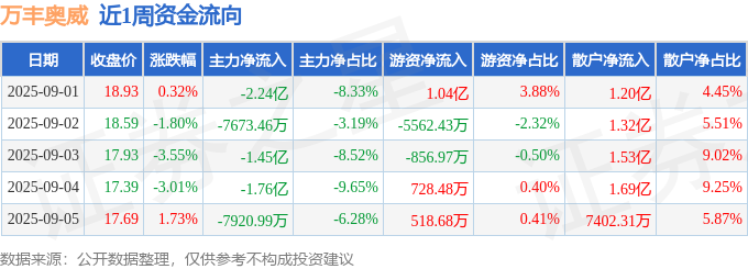 资金流向数据方面,本周万丰奥威主力资金合计净流出7.01亿元,游资资金合计净流入5266.68万元,散户资金合计净流入6.48亿元。本周资金流向一览见下表: