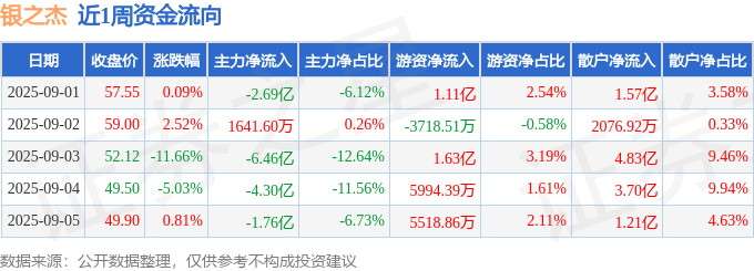 沪深股通持股方面,截止2025年9月5日收盘,银之杰深股通持股数为550.55万股,占流通股比为87.0%。