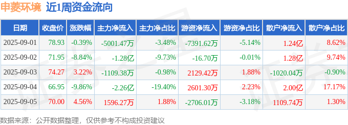 资金流向数据方面,本周申菱环境主力资金合计净流出3.99亿元,游资资金合计净流出5383.59万元,散户资金合计净流入4.53亿元。本周资金流向一览见下表: