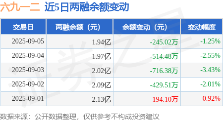证券之星消息,9月5日,六九一二(301592)融资买入805.64万元,融资偿还1050.87万元,融资净卖出245.23万元,融资余额1.94亿元。