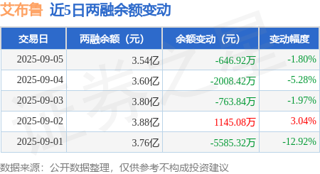 证券之星消息,9月5日,艾布鲁(301259)融资买入5730.17万元,融资偿还6377.08万元,融资净卖出646.92万元,融资余额3.54亿元。