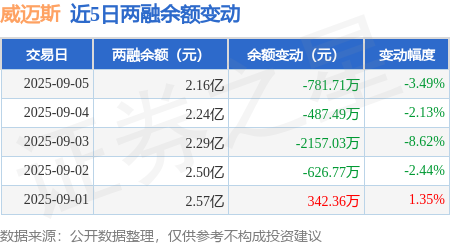 证券之星消息,9月5日,威迈斯(688612)融资买入657.31万元,融资偿还1449.13万元,融资净卖出791.82万元,融资余额2.15亿元。