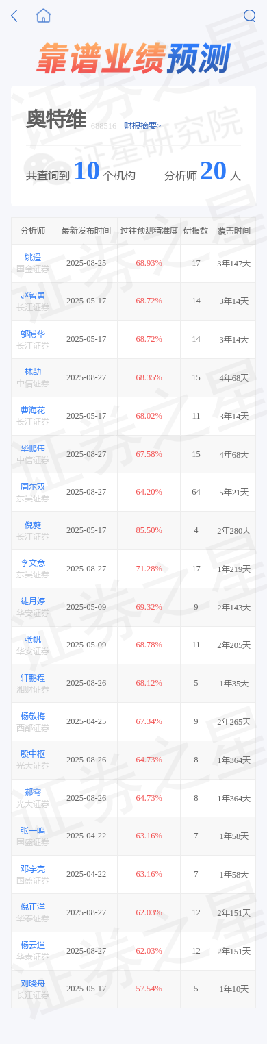 奥特维(688516)是基金经理章恒的重仓股。,其在整个职业生涯内年化收益高达18.52%。章恒管理的万家双利债券C基金在2024年3季度调入奥特维,在持有1个季度后在2024年4季度调出,持有期间的估算收益率达到32.69%。(以上数据经过后复权近似计算)章恒的大佬持仓 - 战绩回顾截图如下: