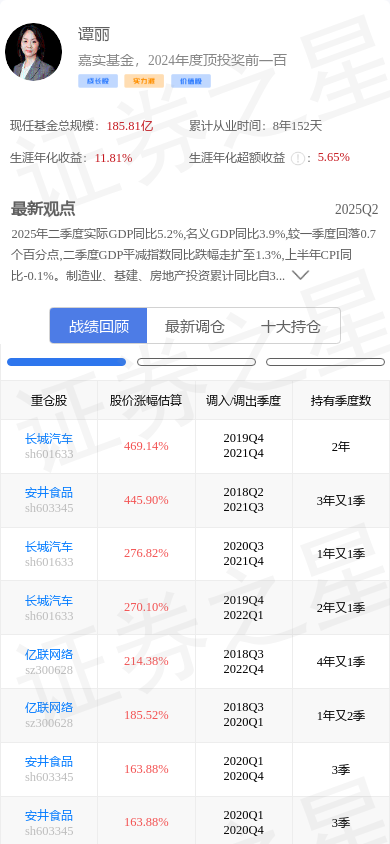 可在证星研究院详细查看谭丽战绩和分析师对基金持仓的增减仓公司的业绩预测。(更多特色估值数据尽在证星研究院)