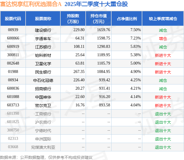 富达悦享红利优选混合A的前十大重仓股如下: