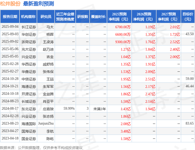 证券之星数据中心根据近三年发布的研报数据计算,东北证券庄嘉骏研究员团队对该股研究较为深入,近三年预测准确度均值为59.99%,其预测2025年度归属净利润为盈利1.43亿,根据现价换算的预测PE为35.41。