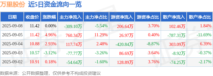 9月8日的资金流向数据方面,主力资金净流出309.1万元,占总成交额5.54%,游资资金净流入206.64万元,占总成交额3.7%,散户资金净流入102.46万元,占总成交额1.84%。