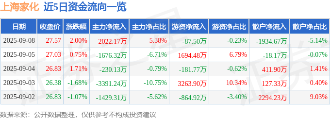 9月8日的资金流向数据方面,主力资金净流入2022.17万元,占总成交额5.38%,游资资金净流出87.5万元,占总成交额0.23%,散户资金净流出1934.67万元,占总成交额5.14%。
