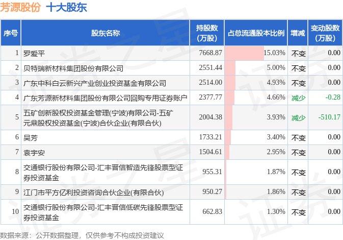 根据芳源股份2025年中报公布的十大股东详情如下: