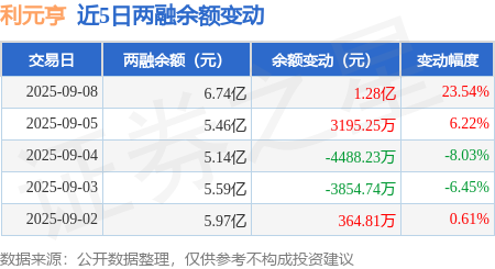 证券之星消息,9月8日,利元亨(688499)融资买入3.64亿元,融资偿还2.35亿元,融资净买入1.28亿元,融资余额6.74亿元,近20个交易日中有13个交易日出现融资净买入。