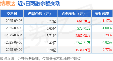 证券之星消息,9月8日,纳思达(002180)融资买入2888.42万元,融资偿还2223.06万元,融资净买入665.36万元,融资余额5.68亿元。