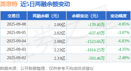 证券之星消息,9月8日,英思特(301622)融资买入1748.31万元,融资偿还1921.96万元,融资净卖出173.65万元,融资余额2.0亿元。
