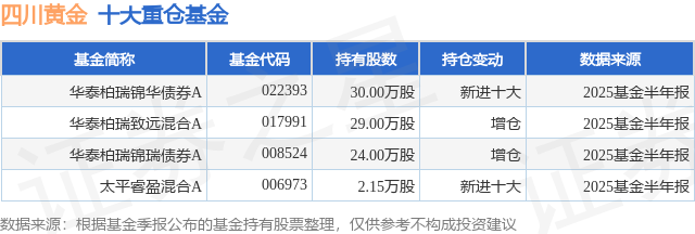 根据2025基金半年报公募基金重仓股数据,重仓该股的公募基金共4家,其中持有数量最多的公募基金为华泰柏瑞基金的华泰柏瑞锦华债券A。华泰柏瑞锦华债券A目前规模为7.83亿元,最新净值1.0311(9月8日),较上一交易日上涨0.02%。该公募基金现任基金经理为何子建 叶丰。何子建在任的基金产品包括:华泰柏瑞丰盛纯债债券A,管理时间为2019年3月18日至今,期间收益率为28.11%;华泰柏瑞锦兴39个月定开债,管理时间为2020年1月20日至今,期间收益率为15.24%;华泰柏瑞锦泰一年定开,管理时间为2020年10月27日至今,期间收益率为8.69%;华泰柏瑞恒利混合A,管理时间为2021年9月14日至今,期间收益率为21.75%。叶丰在任的基金产品包括:华泰柏瑞致远混合A,管理时间为2023年6月12日至今,期间收益率为38.73%;华泰柏瑞锦瑞债券A,管理时间为2024年6月14日至今,期间收益率为13.09%;华泰柏瑞安盛一年持有期债券A,管理时间为2025年7月9日至今,期间收益率为0.47%。