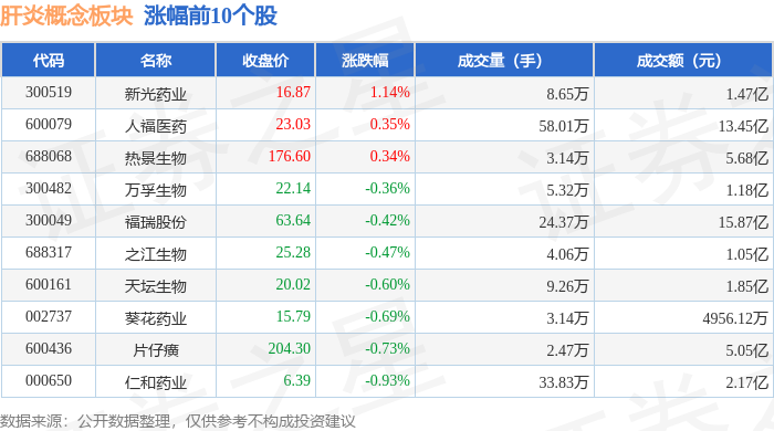证券之星消息,9月9日肝炎概念板块较上一交易日下跌1.34%,华纳药厂领跌。当日上证指数报收于3807.29,下跌0.51%。深证成指报收于12510.6,下跌1.23%。肝炎概念板块个股涨跌见下表: