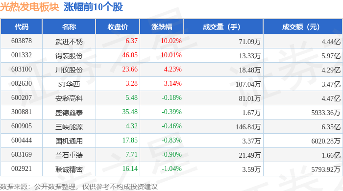 证券之星消息,9月9日光热发电板块较上一交易日下跌0.95%,金通灵领跌。当日上证指数报收于3807.29,下跌0.51%。深证成指报收于12510.6,下跌1.23%。光热发电板块个股涨跌见下表: